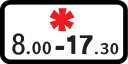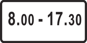 | 8.5.4 | 8.5.4, 8.5.5 - 8.5.7. «Գործողության ժամանակ». 8.5.4 ցուցանակը տեղեկացնում է օրվա այն ժամերը, իսկ 8.5.5 - 8.5.7 ցուցանակները` նաև շաբաթվա այն օրերը, որոնց ընթացքում նշանը գործում է. |