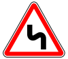 Վտանգավոր շրջադարձերով ճանապարհի հատված-1.12.1 առաջին շրջադարձը դեպի աջ . 1.12.2-առաջին շրջադարձը դեպի ձախ.