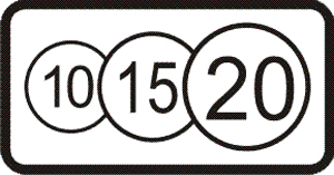 | 8.20.1 | «Տրանսպորտային միջոցի սայլակի տեսակը». կիրառվում են 3.12 նշանի հետ և ցույց տալիս տրանսպորտային միջոցի մոտեցված սռնիների թիվը, որոնցից յուրաքանչյուրի համար նշանի վրա նշված զանգվածը համարվում է սահմանային թույլատրելի. | |||||||